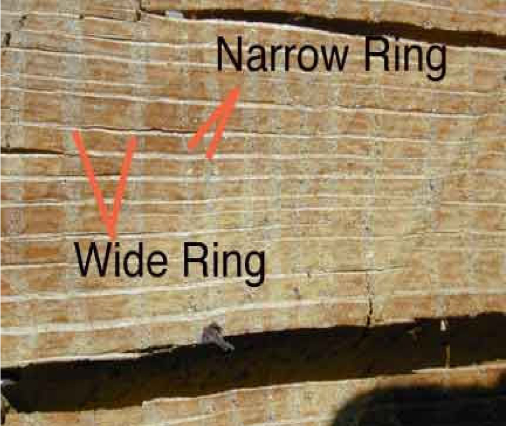 The growth pattern for each season gives light coloured wood closer Timber Properties